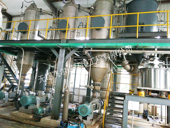 ?? 蒸發(fā)器、分離器、冷凝器、真空及排水系統(tǒng)、各效料液、輸送泵、操作平臺、電器儀表控制柜及閥門、管路等系統(tǒng)組成。